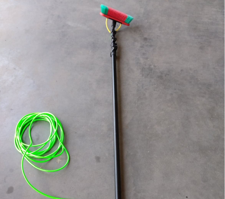 Telescopische steel 6,5m + hoekadapter + borstel + steelslang 12m